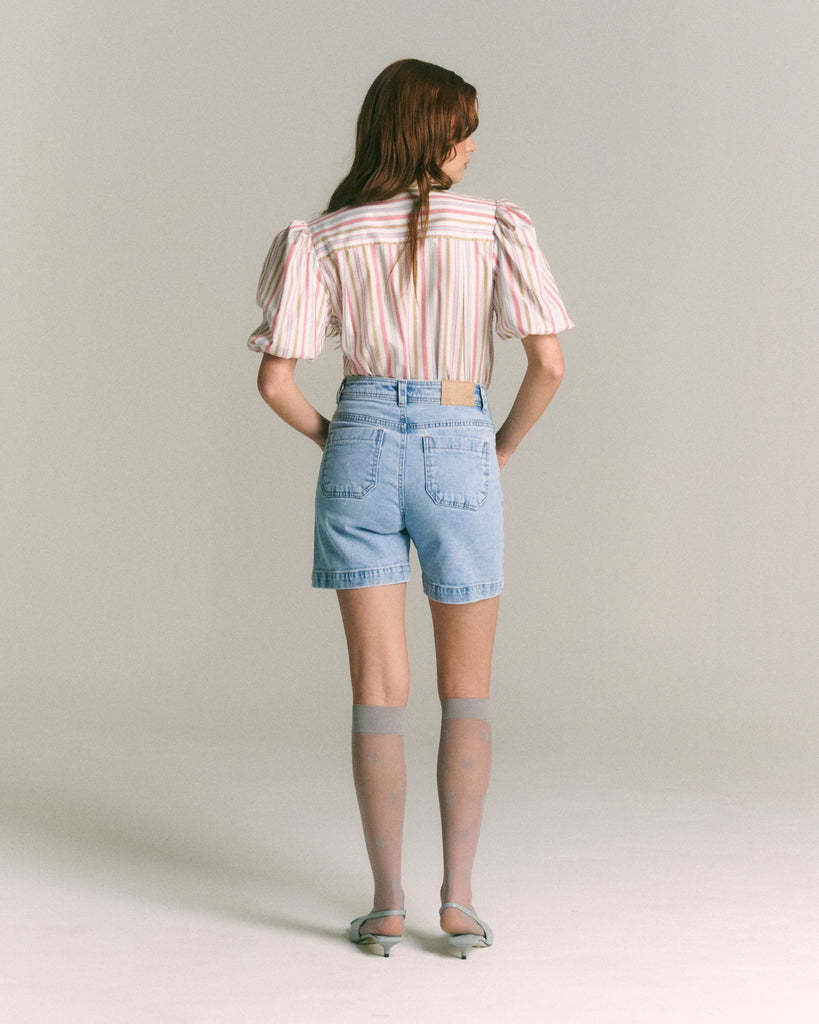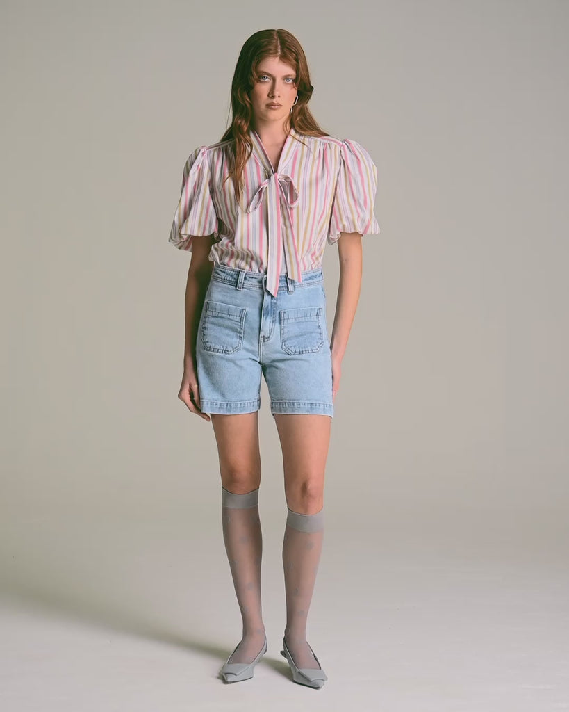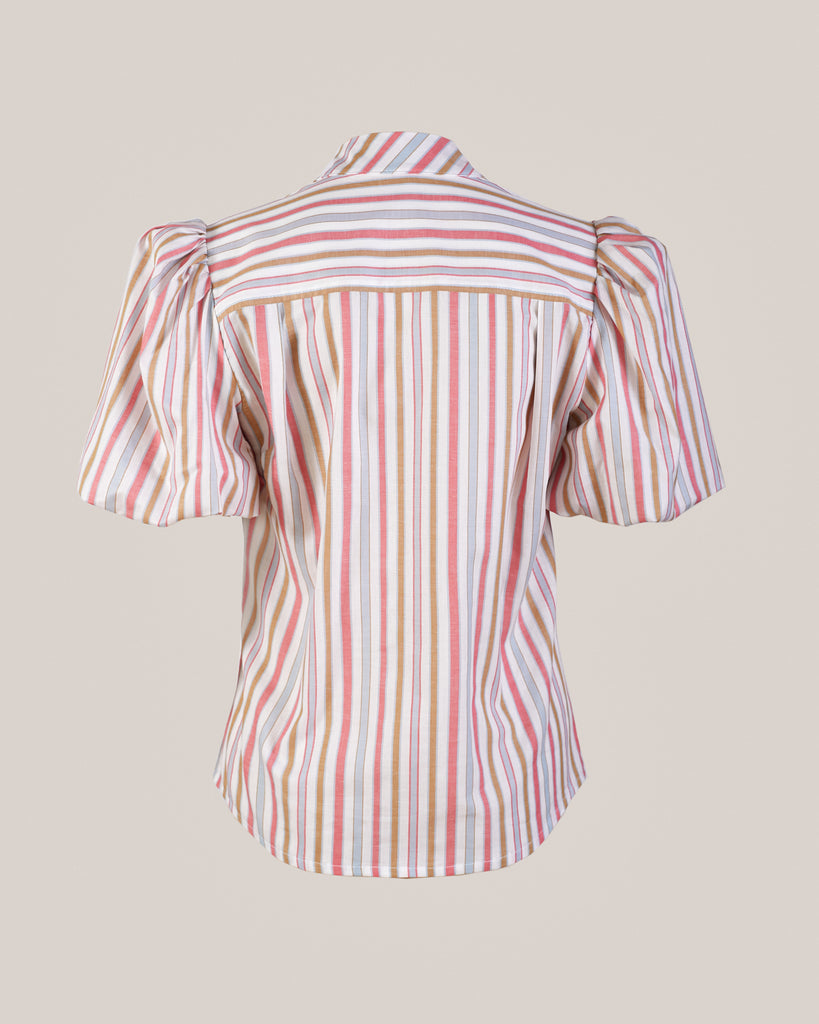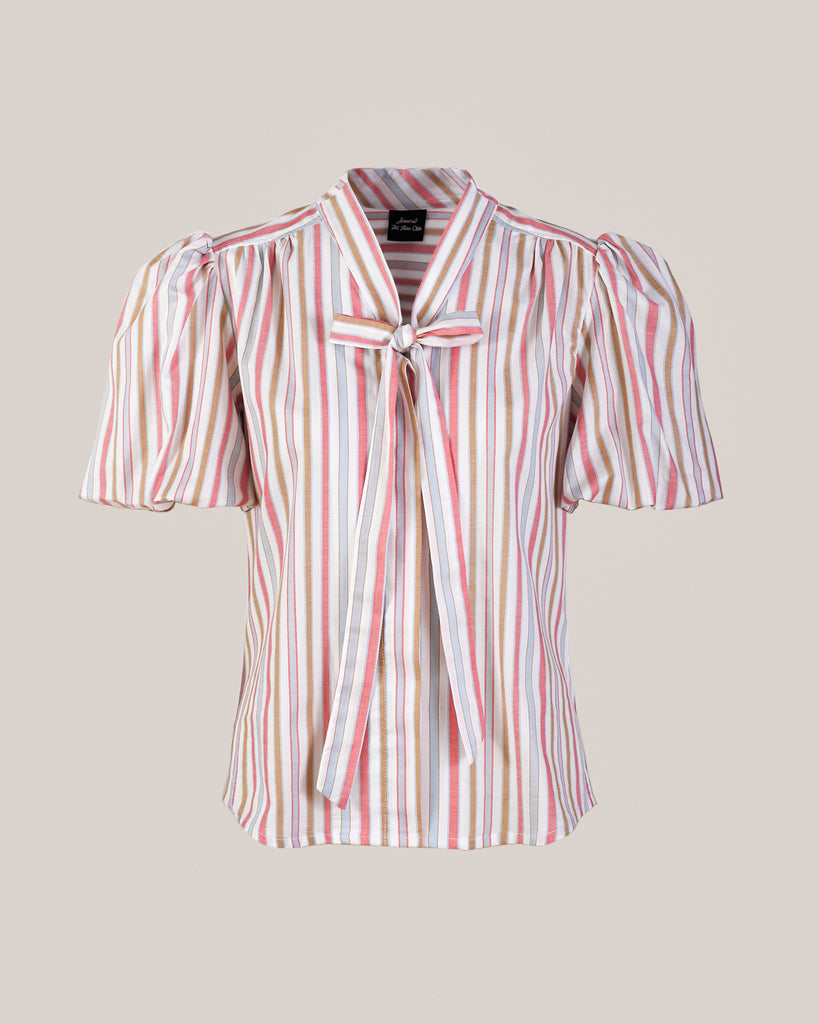 La Blusa Greta en listado rojo captura la frescura y alegría de la temporada estival con su juego de rayas en tonos cálidos. Confeccionada en 100% algodón certificado OEKO-TEX, esta versión destaca por su caída liviana y diseño de inspiración romántica. El lazo al cuello aporta un toque delicado y versátil, mientras que las mangas abullonadas con recogido en el hombro suman volumen y carácter. Una prenda pensada para quienes buscan elegancia informal con un guiño retro y femenino.