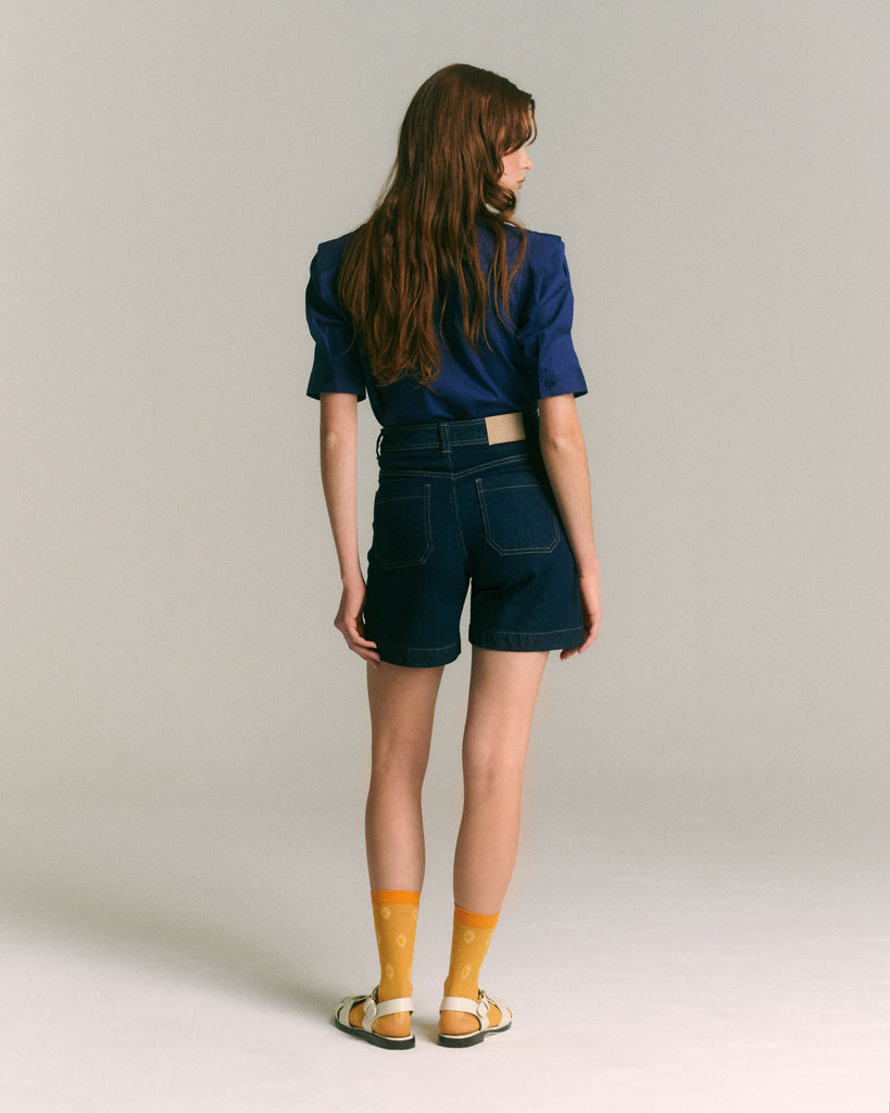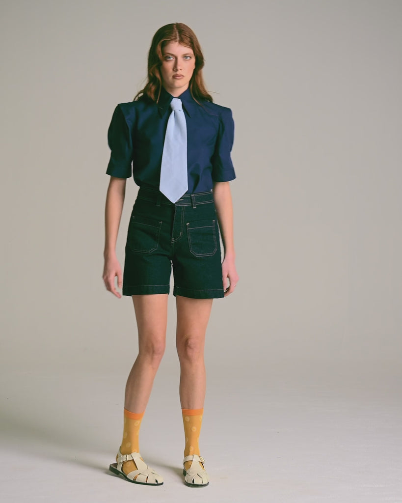 La Blusa Lucía en azul profundo se presenta como una opción elegante y atemporal para el verano. Confeccionada en 100% algodón certificado OEKO-TEX, destaca por su estructura precisa y detalles de inspiración sastrera. Su diseño entallado realza la figura con sofisticación, mientras que las mangas abullonadas con tablón central y el distintivo cuello italiano aportan carácter y feminidad. Ideal para looks urbanos o de oficina, es una prenda versátil que combina la frescura del algodón con una silueta cuidada y actual.