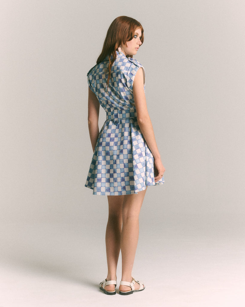Inspirado en la silueta clásica del vestido safari, este modelo sin mangas reinterpreta el estilo utilitario con una actitud lúdica y contemporánea. Su print de azulejos en tonos índigo y celeste —diseñado exclusivamente para esta temporada— le aporta un aire fresco y artístico, mientras que los bolsillos en el pecho, las charreteras en los hombros y el cinturón con hebilla forrada evocan el espíritu funcional del diseño original. Un vestido ideal para mujeres que buscan una prenda versátil, que combine carácter y encanto. Confeccionado en algodón certificado OEKO-TEX, liviano y fresco, este modelo es una apuesta segura para los días más cálidos.