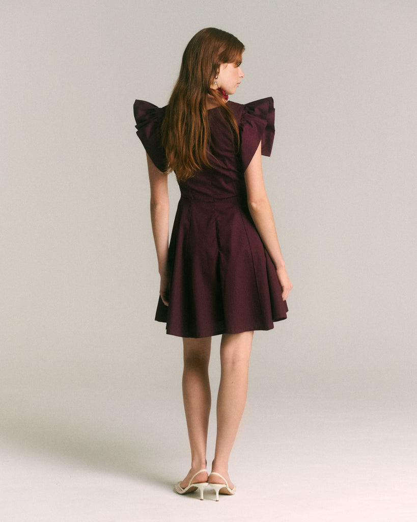 Una versión más audaz y sofisticada de nuestro clásico vestido romántico. El vestido Julieta en color burdeo captura la esencia de la femineidad moderna con su escote cuadrado, mangas estructuradas tipo mariposa y falda evasé con gran movimiento. Confeccionado en 100% algodón certificado OEKO-TEX, combina estructura y frescura, ideal para ocasiones especiales de primavera-verano donde quieras destacar con un diseño que equilibra dulzura y carácter.