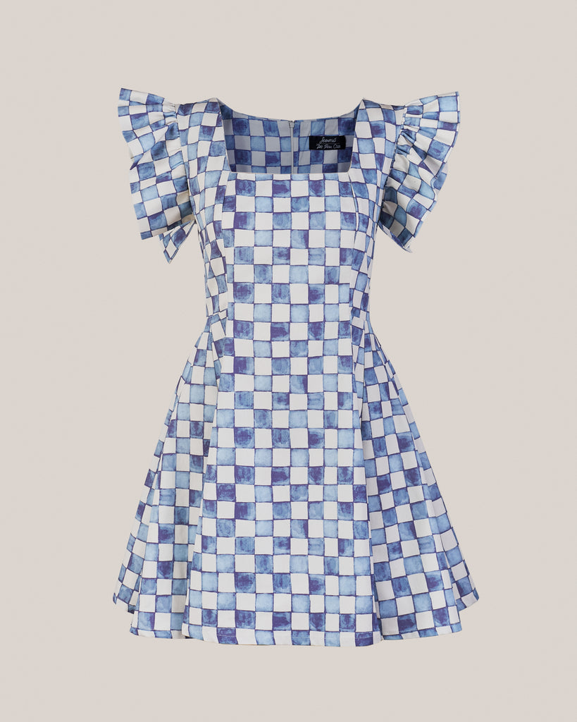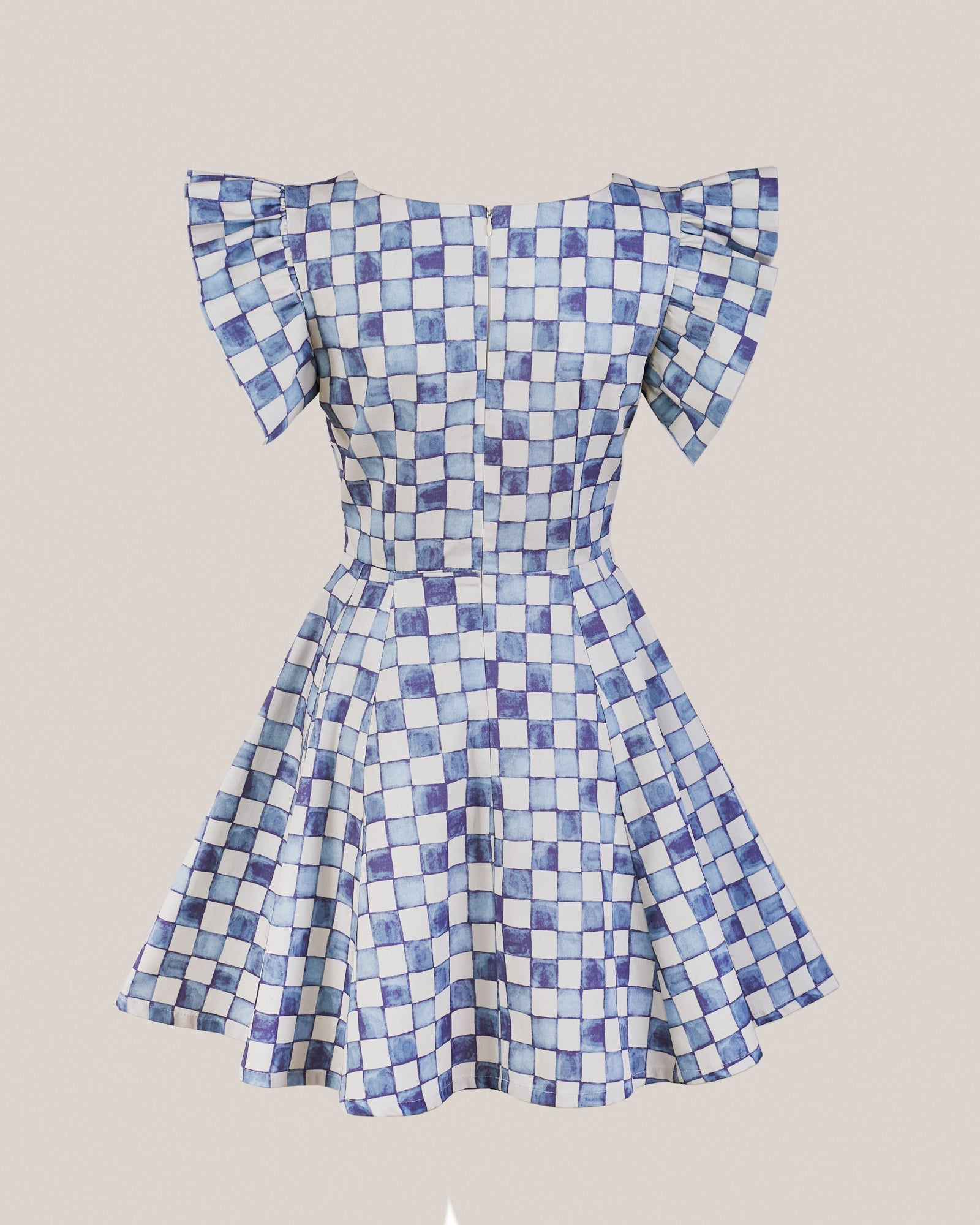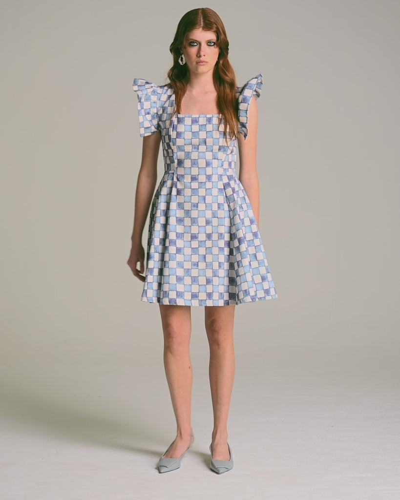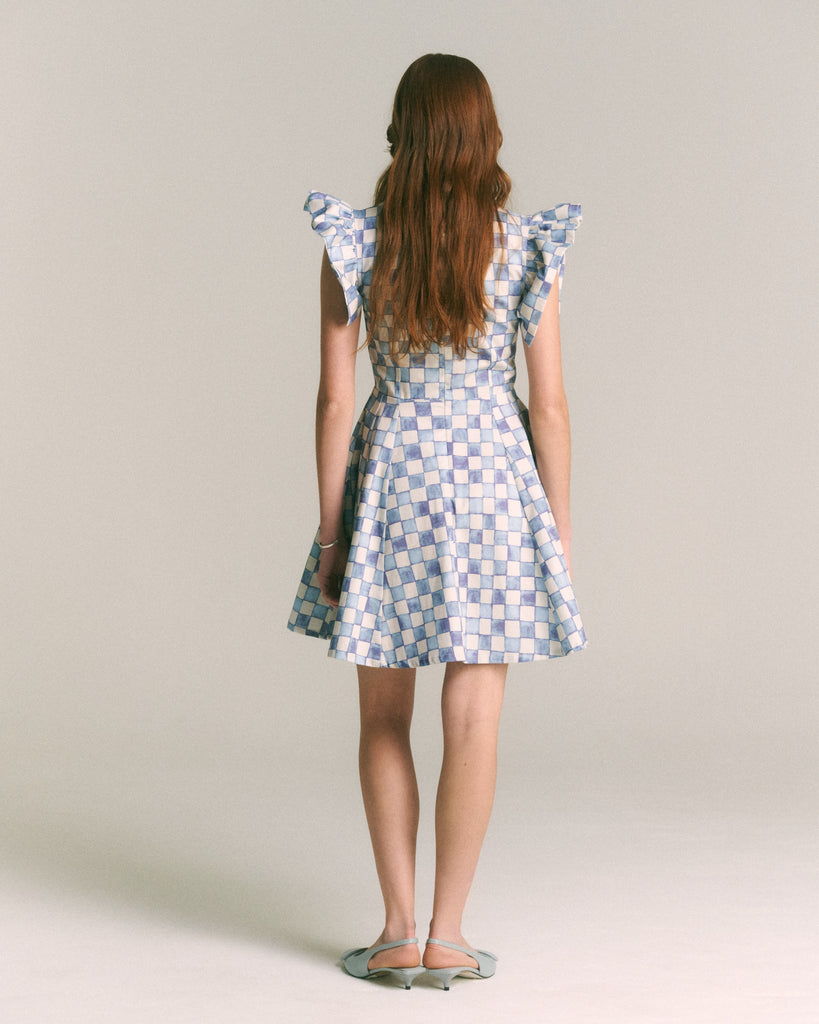 • Estampado original de cuadros en tonos azules diseñado especialmente para esta colección.