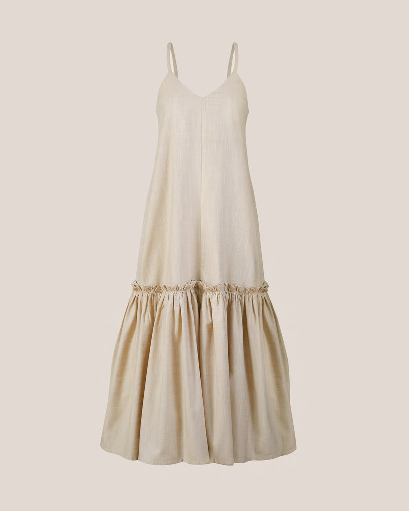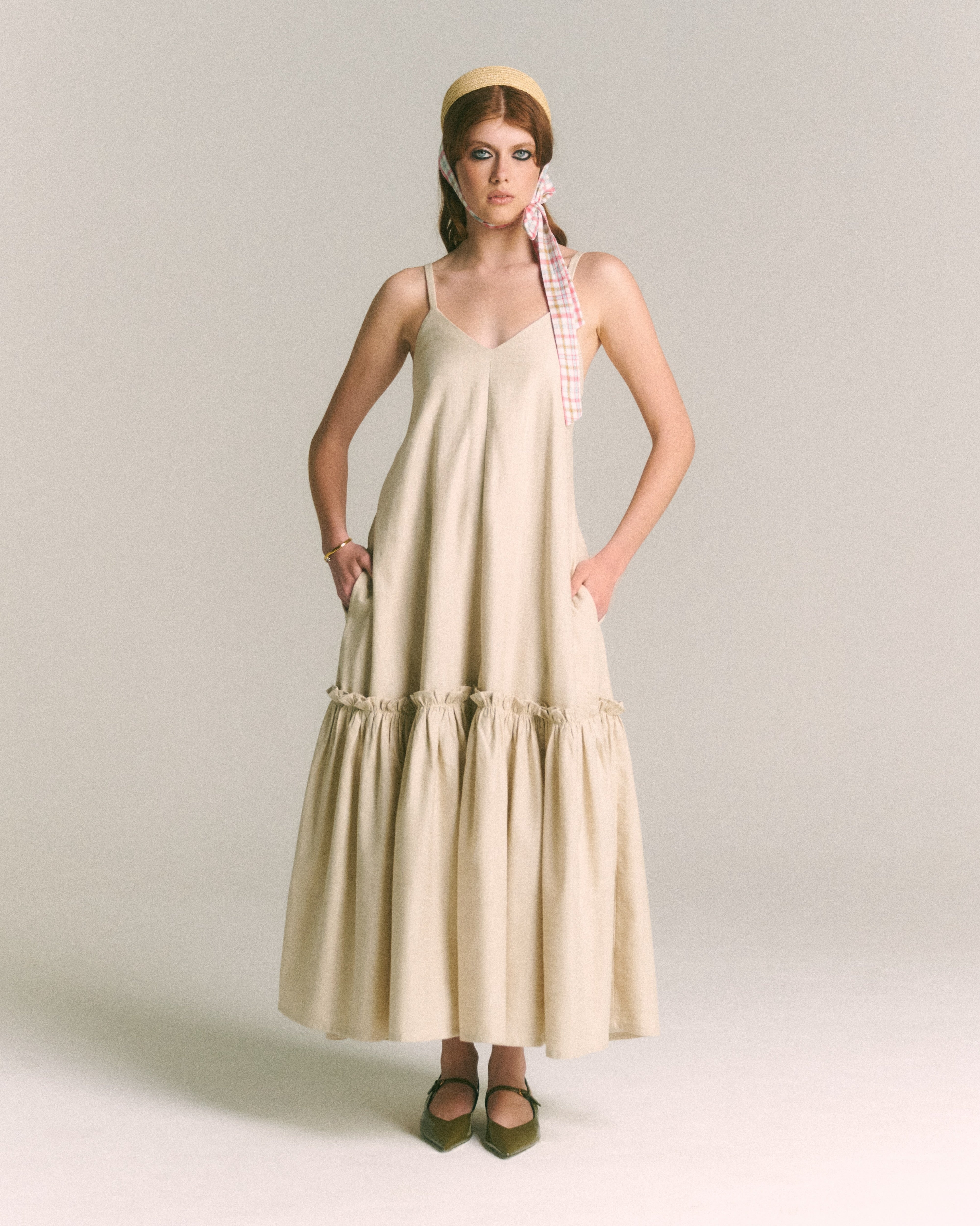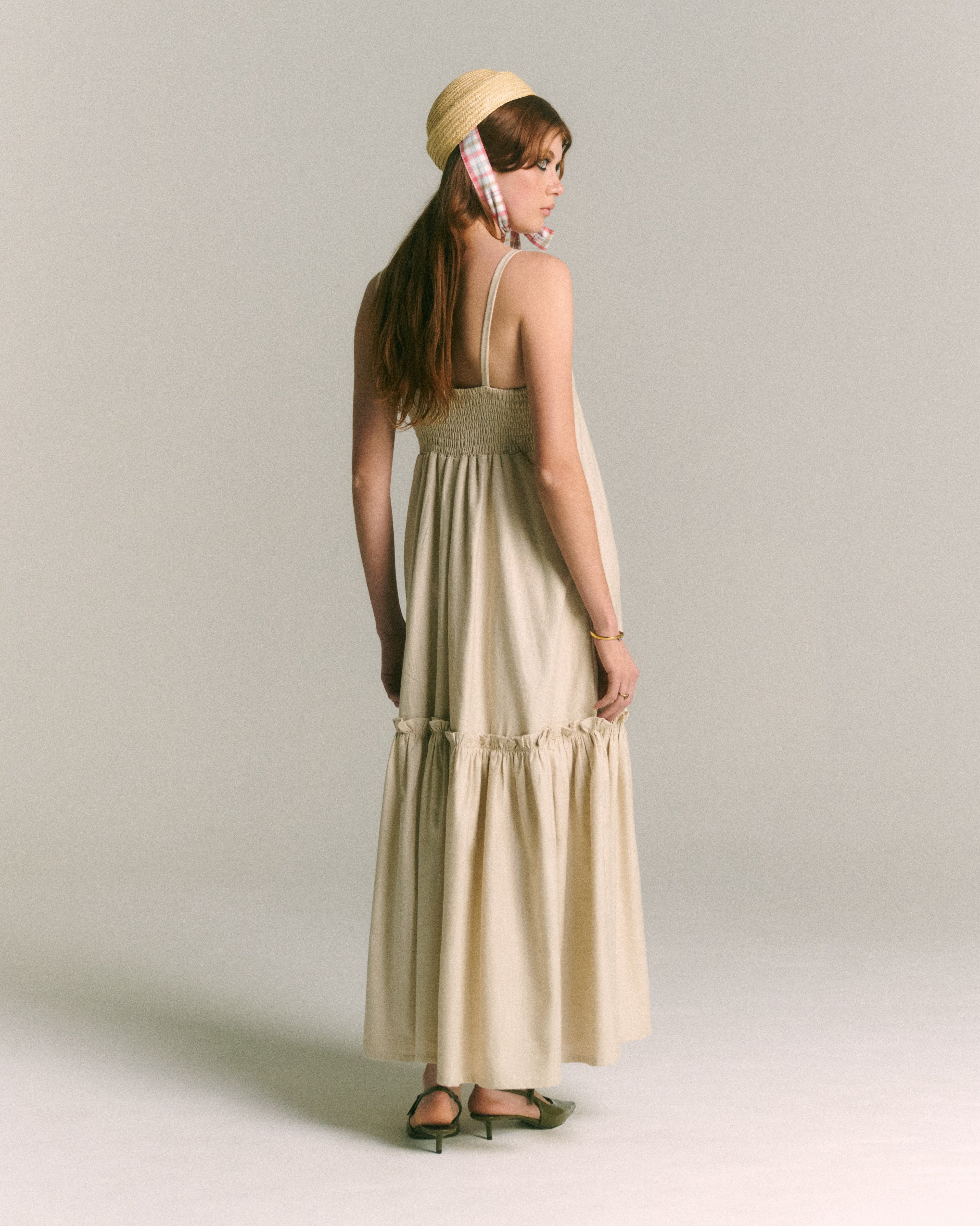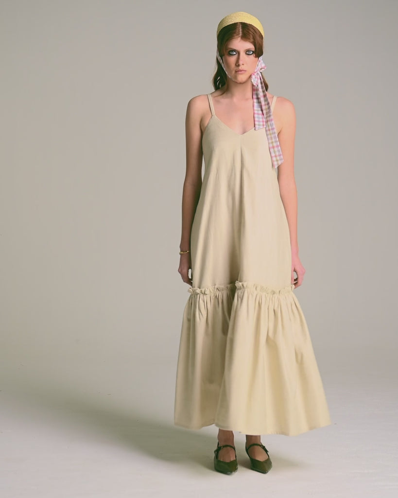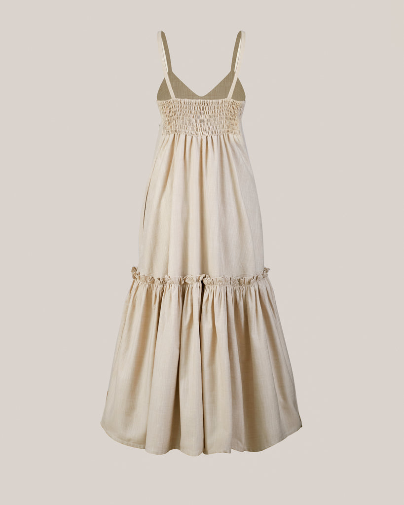 Confeccionado en 100% algodón certificado OEKO-TEX, el Vestido Violeta Arena es la expresión máxima del verano en clave minimalista. Su silueta suelta, escote en V y tirantes delgados lo convierten en una prenda fresca y femenina para los días de calor. El detalle de panal de abeja en la espalda asegura un ajuste cómodo, mientras que la basta con volumen y frunces le otorga un movimiento sutil y romántico. El tono arena aporta naturalidad y sobriedad, ideal para combinar con accesorios de rafia o acentos metálicos. Tiene bolsillos laterales para un plus de funcionalidad. Perfecto para un almuerzo al aire libre o una escapada de fin de semana.
